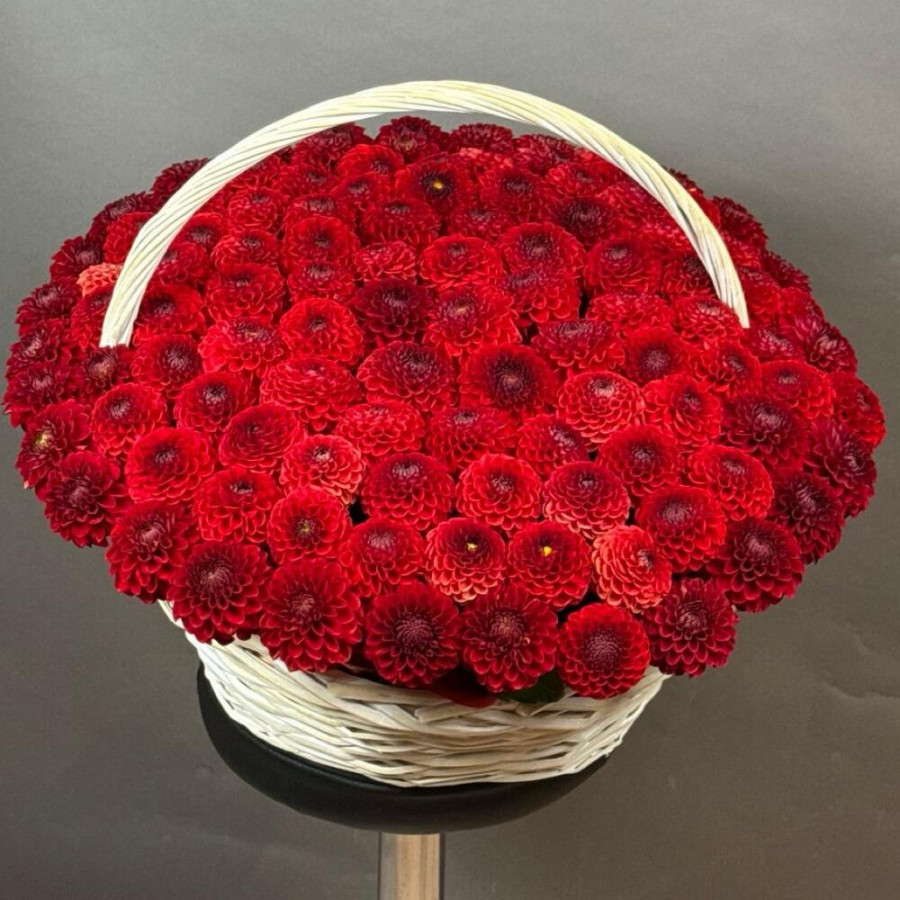 Композиция из 101 красной георгины в корзине в Бахчисарае