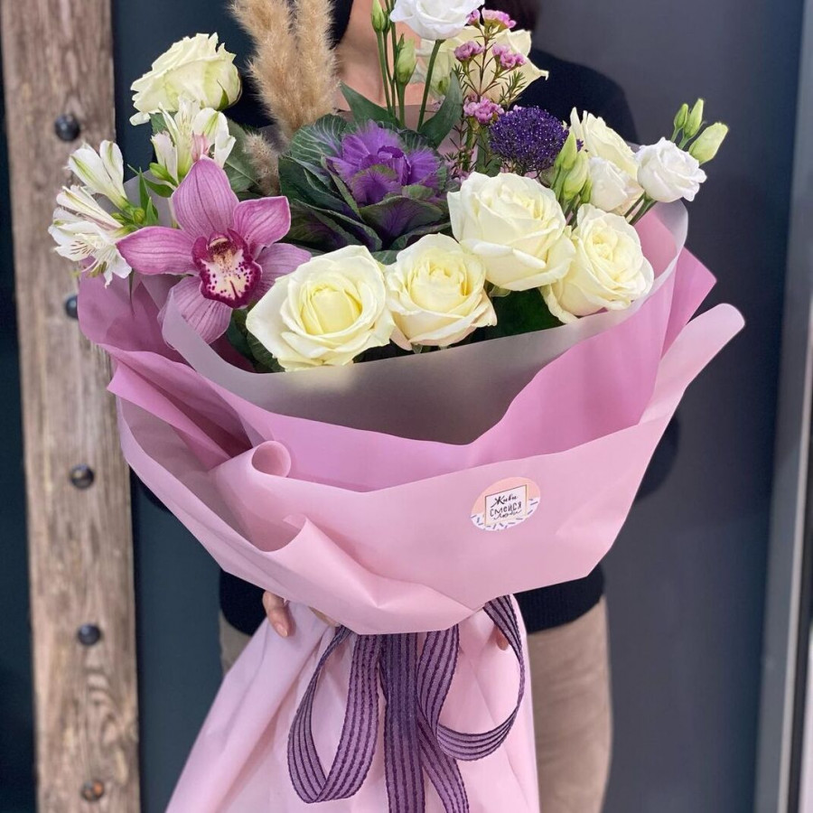 Перед выездом курьера пришлём фото свежесобранного букета, чтобы вы были спокойны